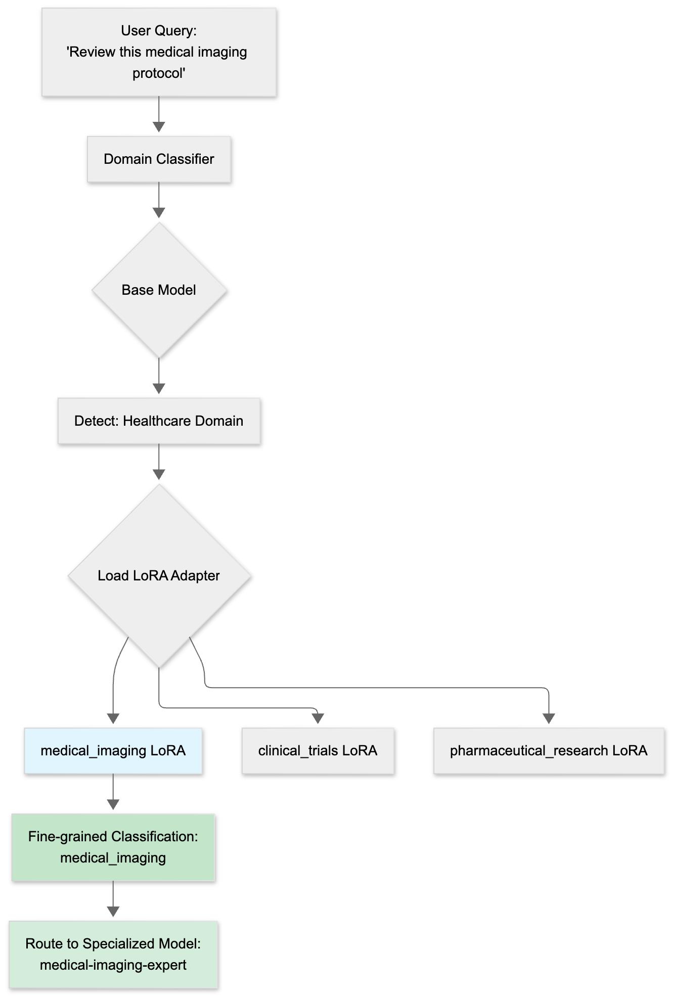 Key Advantage - Extensibility via LoRA: While the base model covers 14 MMLU categories, enterprises can train lightweight LoRA adapters to add private domain categories without retraining the entire model. For example:
