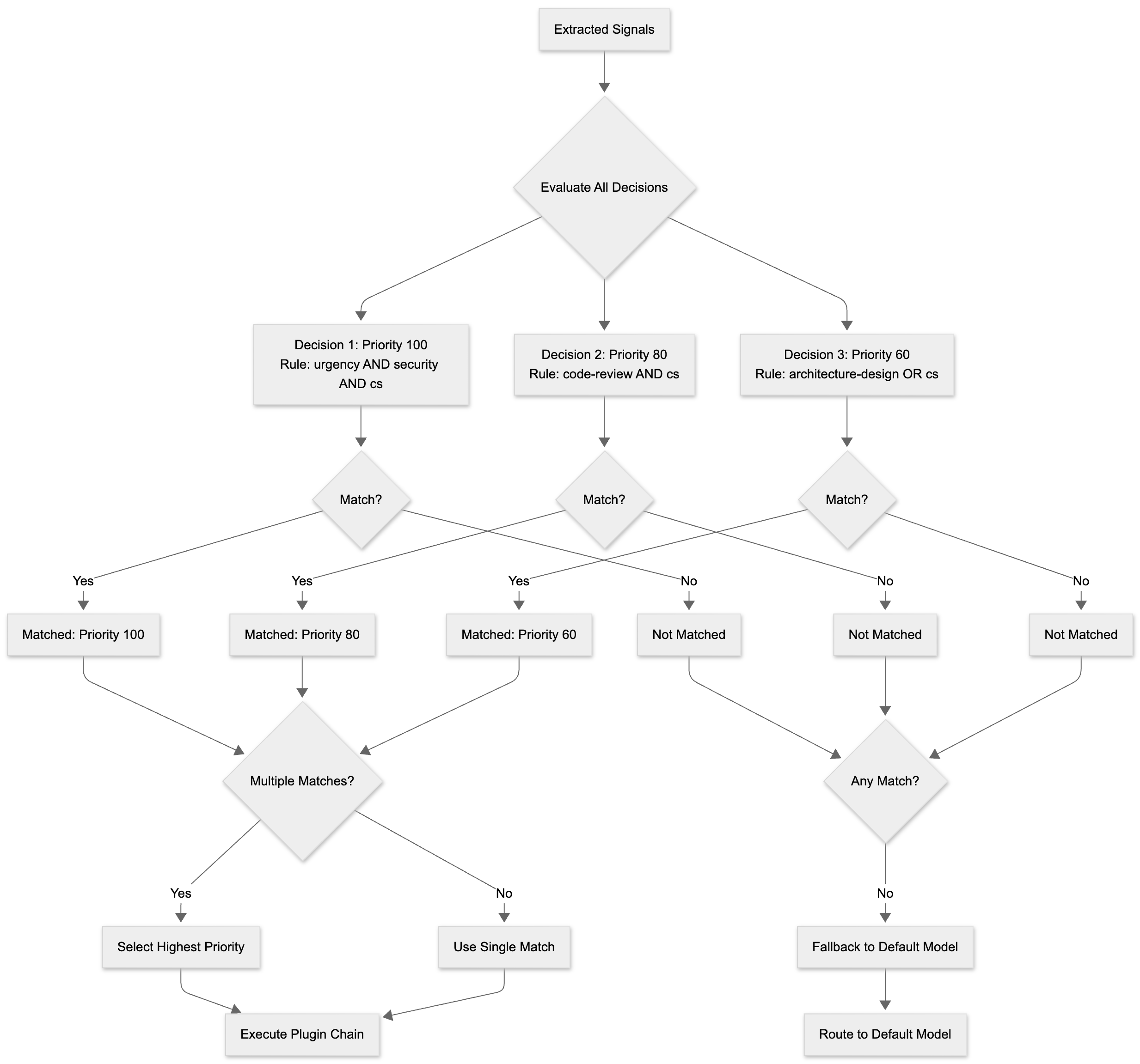 Key Advantage - Interpretability: Unlike black-box ML models, keyword signals provide complete transparency. When debugging routing decisions, you can trace exactly which keywords triggered which rules. This is critical for compliance auditing and troubleshooting production issues.