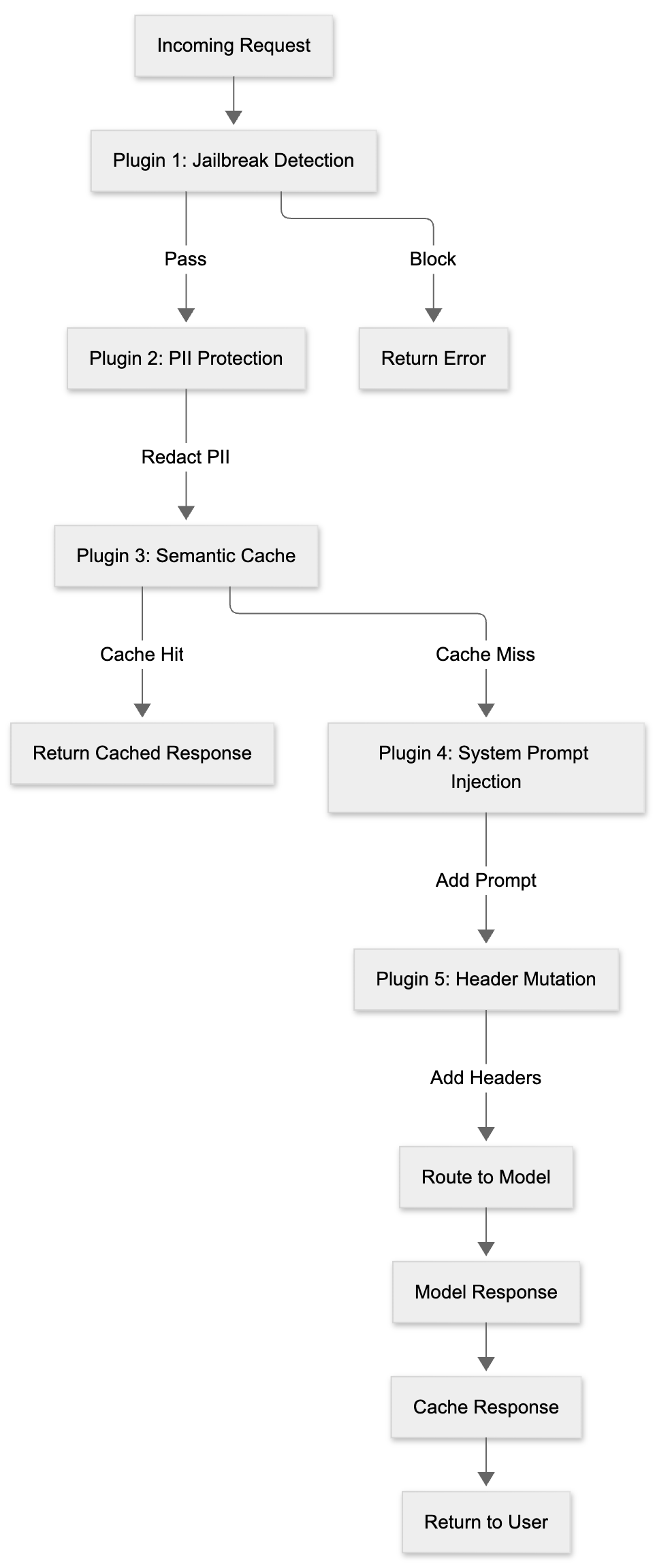 Built-in Security: Integrated plugins for jailbreak detection, PII protection, and compliance